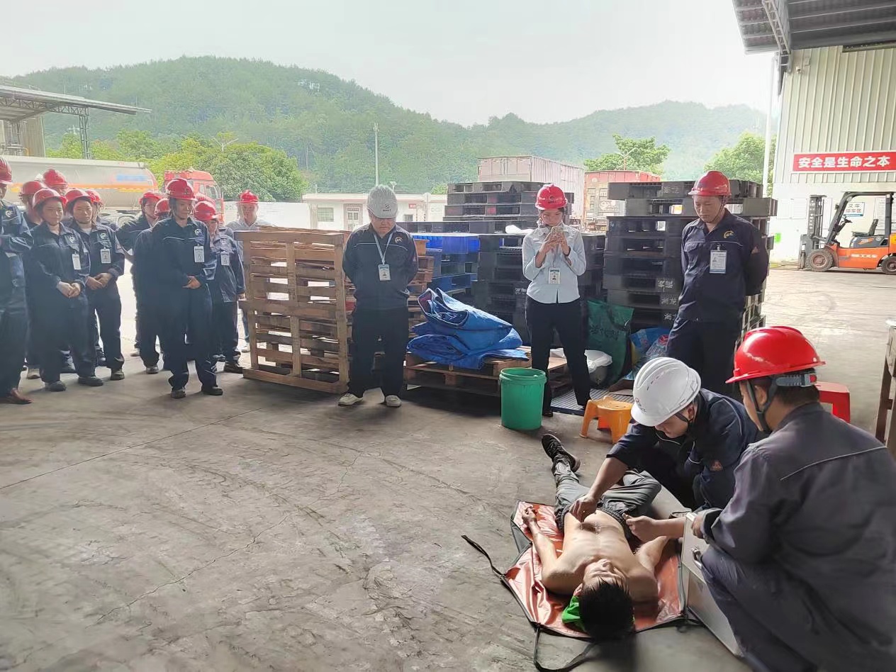 為進(jìn)一步提高員工安全意識,增強(qiáng)員工對化學(xué)品灼傷事故現(xiàn)場的自救、處置能力和提高消防裝備使用能力,2022年9月22日下午,我司在化工廠區(qū)開展了一場化學(xué)品灼傷及消防裝備實(shí)操演練。